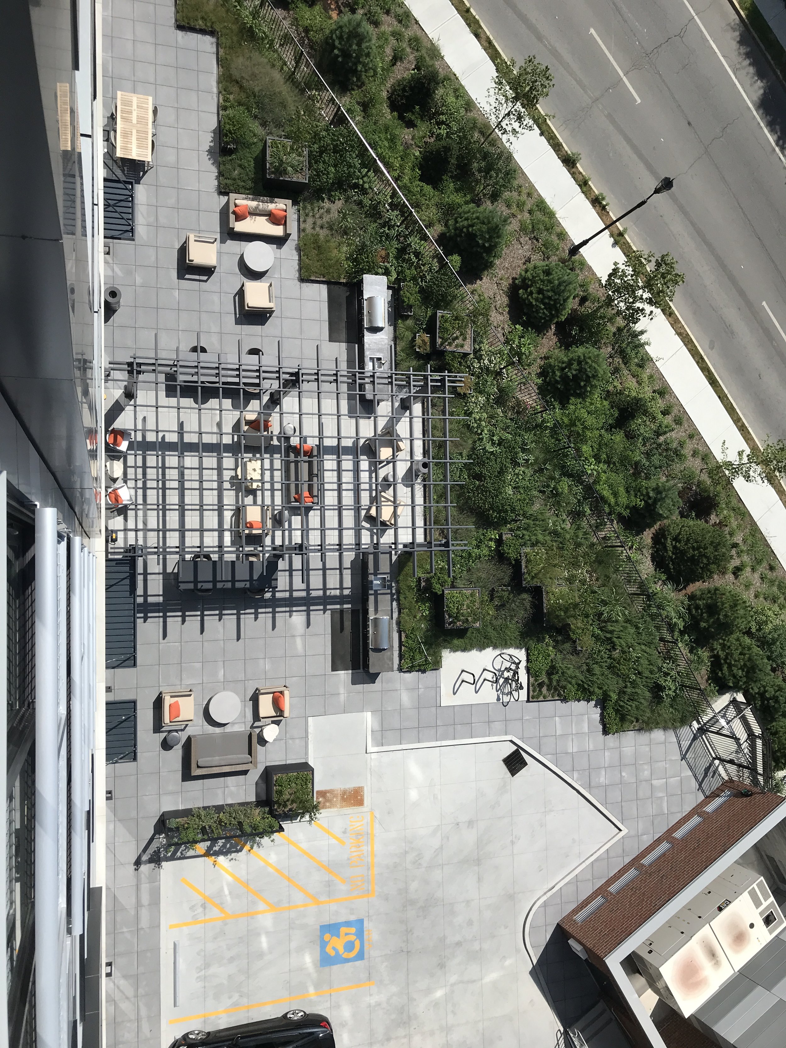 The City Centre project features the first building in Tompkins County to be awarded an Enhanced Tax Abatement by achieving 40% more energy efficiency than building code through the use of cutting-edge insulation methods, full electrification of appliances, and the innovative use of recycled materials. While leading the municipal approvals, WPD worked with the City of Ithaca to provide a generous public streetscape consisting of large shade trees, specialty paving, and outdoor dining. The project’s site design considers both the densely urban and natural creek landscapes on either side of the site. The lushly planted slope between the green roof and the adjacent street sits above the building’s garage. Another planted eighth-floor terrace includes a patio space with a custom-designed pergola, pedestal paving, outdoor cooking, and a gathering space overlooking the Commons with views of Cayuga Lake.
