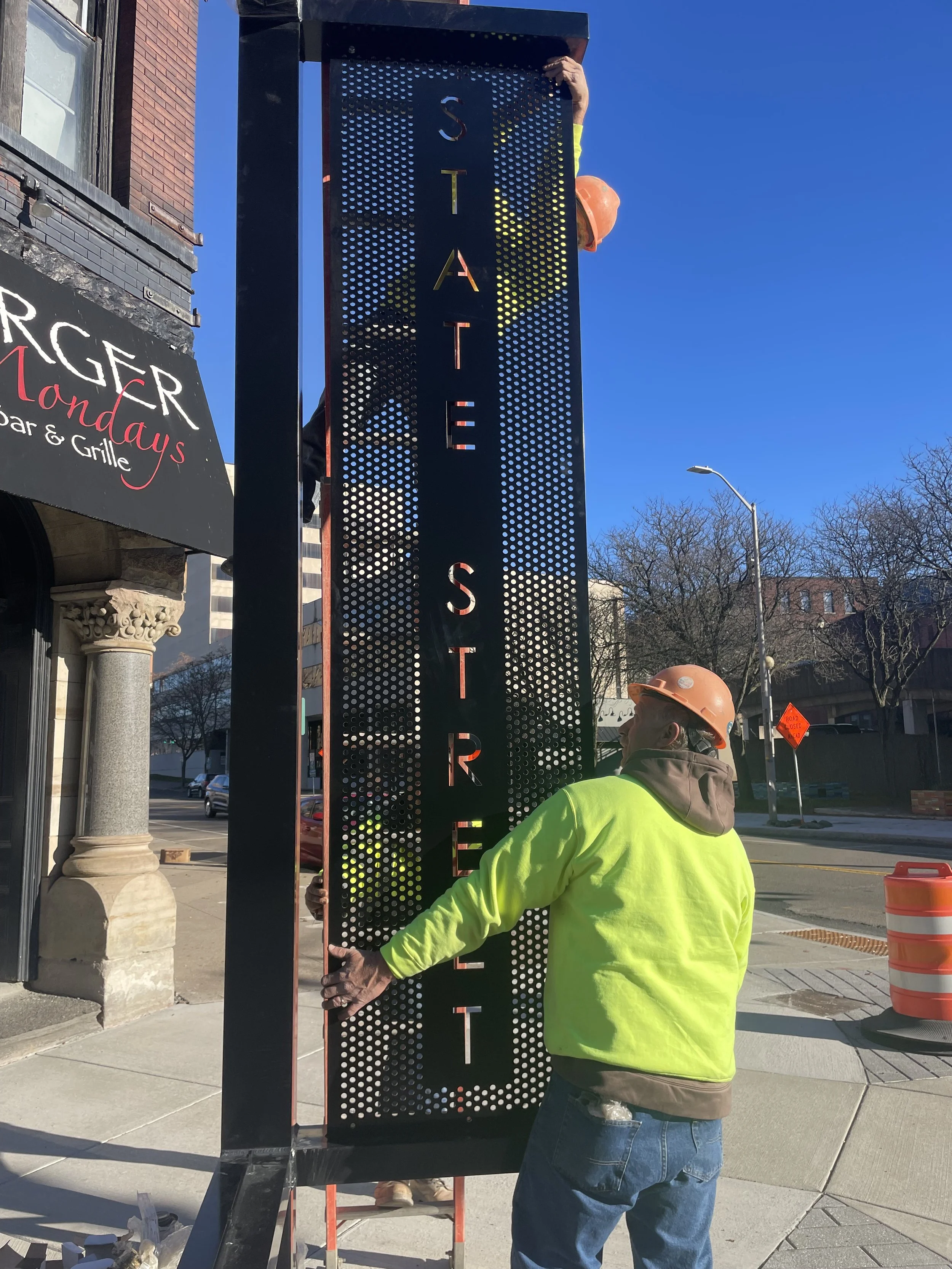 Our role in the Downtown Arts District development started with a successful Greater Binghamton Fund application and evolved to become several projects, including an improved streetscape. Working with Barton & Loguidice, WPD designed improvements that prioritize public spaces, public art, and pedestrian infrastructure, leading to a unified and memorable arts district. Said improvements include supportive wayfinding throughout the district, sculptural gateways, and on-street intersection murals. To enhance pedestrian safety and provide spaces for green infrastructure, curb bump-outs are strategically placed at district gateways, near entrances to major arts institutions, and along gallery-filled streets, encouraging sidewalk dining. Parking garage improvements are designed with district visitors in mind, while custom lighting celebrates the local arts organizations in the district and generates an ambient atmosphere for pedestrians and motorists alike.